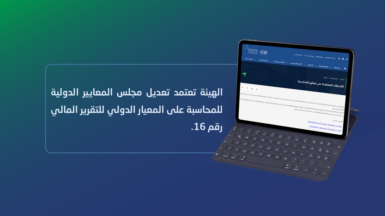 الهيئة تعتمد تعديل مجلس المعايير الدولية للمحاسبة على المعيار الدولي للتقرير المالي رقم 16